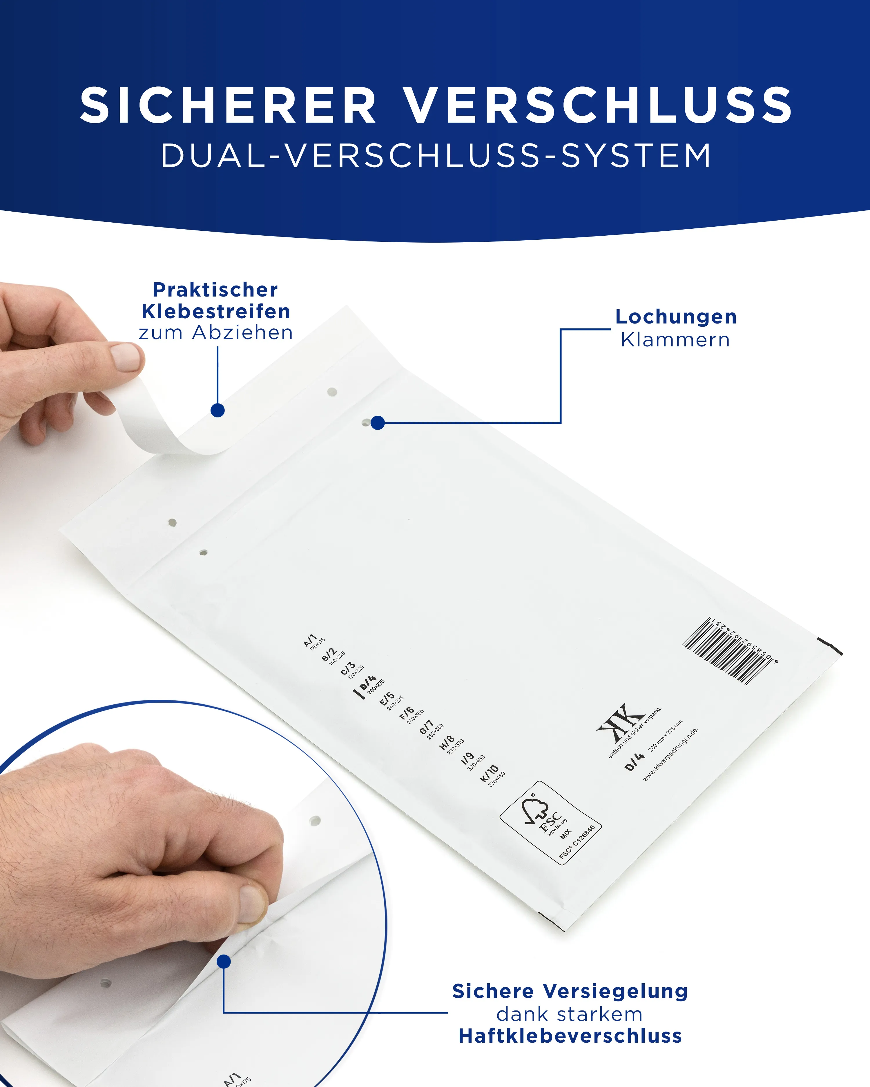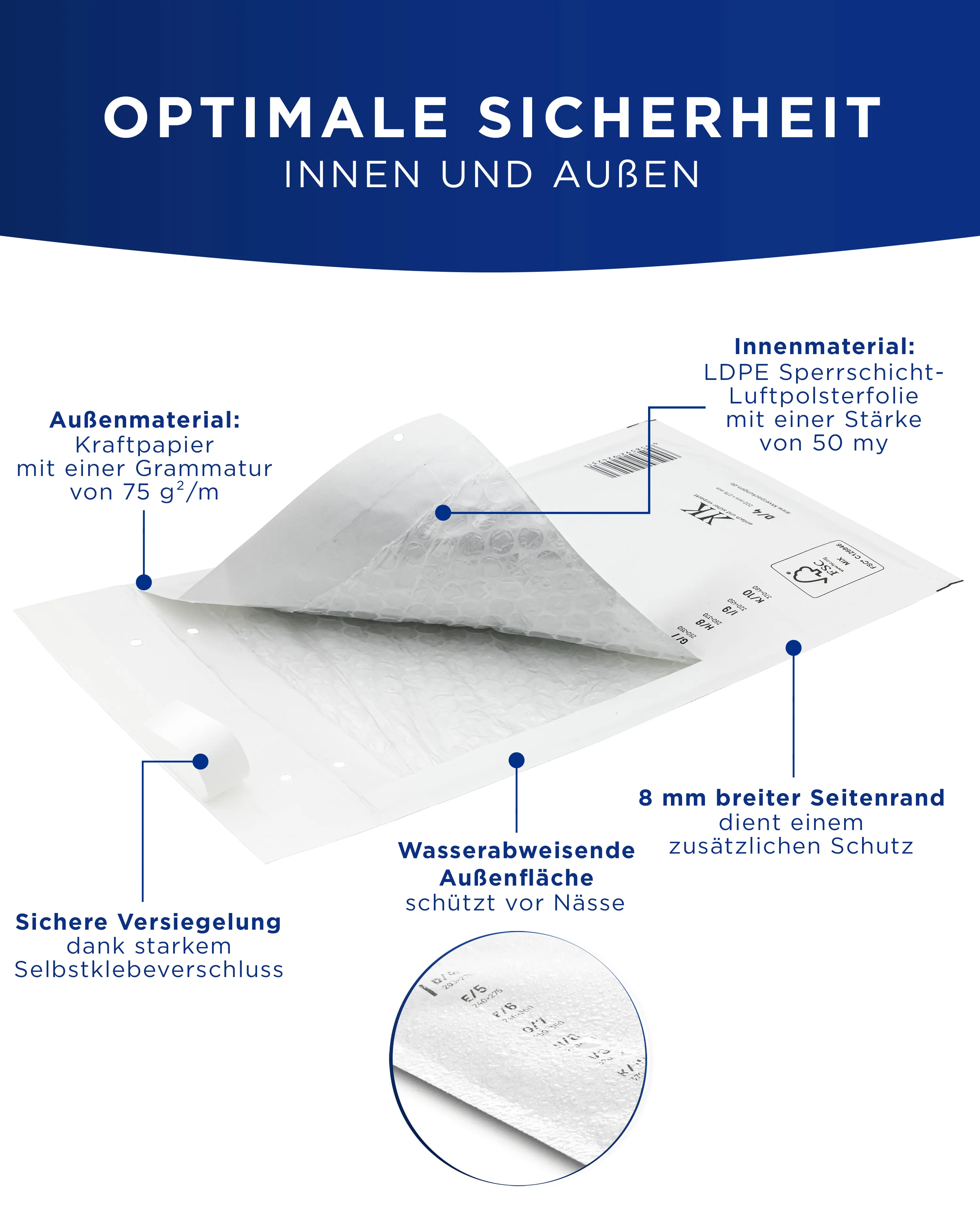 Für Unternehmen, die Wert auf nachvollziehbare Lieferketten legen, ist die FSC-Zertifizierung des Kraftpapiers ein dokumentierbarer Baustein in der Nachhaltigkeitskommunikation. Die vollständige Recycelbarkeit erleichtert zudem die Entsorgung auf Empfängerseite – ein Aspekt, den auch Ihre Kunden zunehmend erwarten.