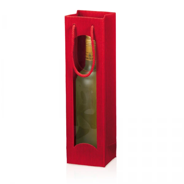 100x85x360 mm 1er Tragetüte Flasche mit Fenster Welle Rot