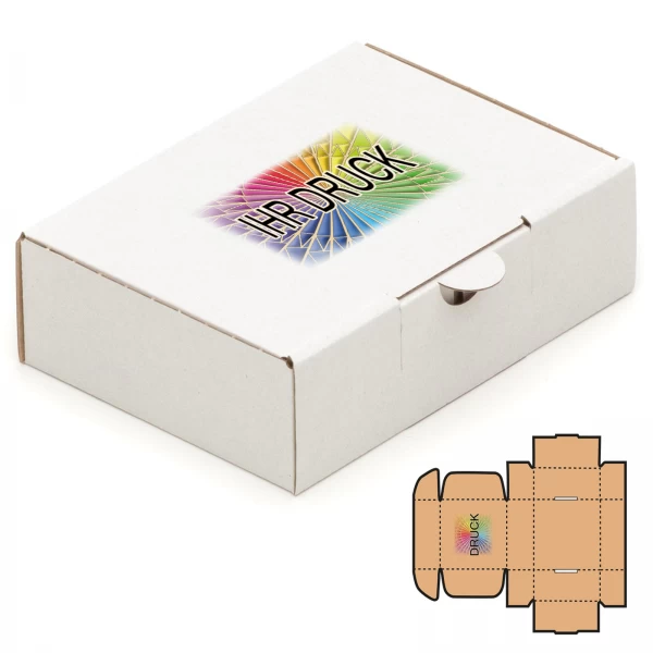 Mit diesem bedruckbaren Maxibriefkarton im DIN-A6-Format setzen Sie Ihre Marke bereits auf der Verpackung in Szene. Der weiße Karton (Innenmaße: 150 x 105 x 46 mm, Außenmaße: 159 x 115 x 48 mm) bietet eine ideale Grundlage für Ihren individuellen Digitaldruck – ob Logo, Produktinformation oder ein durchgängiges Markendesign. Gerade im E-Commerce, wo die Verpackung oft der erste physische Kontakt mit Ihrer Marke ist, macht ein bedruckter Versandkarton einen spürbaren Unterschied gegenüber neutraler Standardware. Bitte beachten Sie, dass die Druckfläche maximal 30 % der Oberfläche umfasst und das Motiv mittig platziert wird.