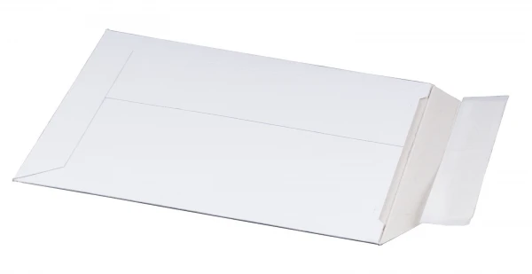 Das Material – Vollpappe mit einer Grammatur von 450 g/qm – ist deutlich steifer als herkömmliche Versandtaschen aus Karton oder Wellpappe und dabei vollständig recyclingfähig. Damit eignet sich die Tasche auch für Unternehmen, die Wert auf nachhaltige Verpackungslösungen legen und gleichzeitig einen professionellen Versandauftritt sicherstellen möchten. Die weiße Oberfläche wirkt neutral und lässt sich bei Bedarf mit Adressaufklebern oder Versandetiketten problemlos bekleben.