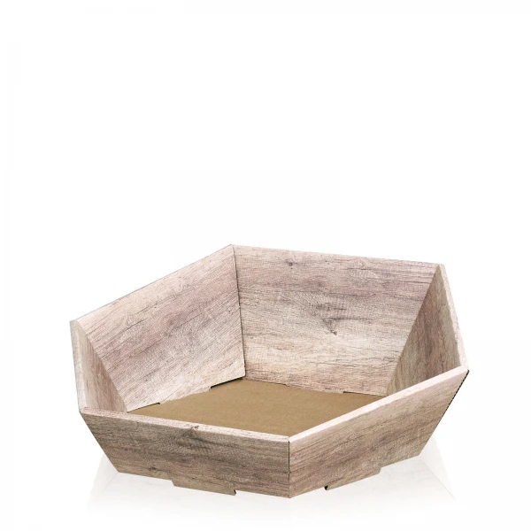 380x340x75/130 mm Präsentkorb sechseckig Holzoptik Creme