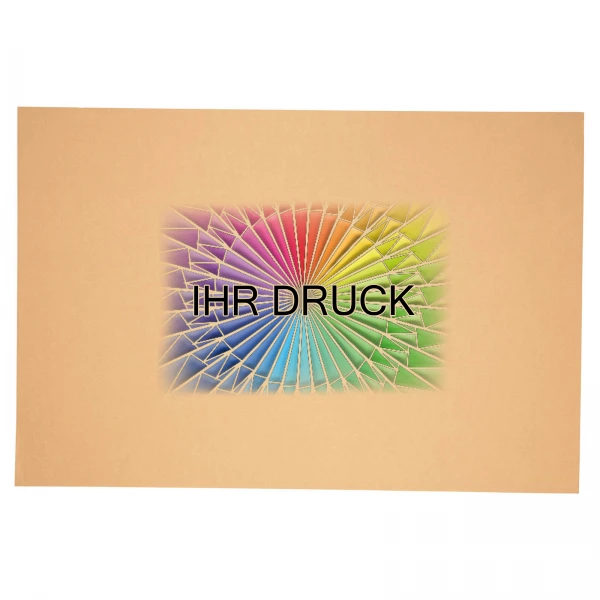 Der Zuschnitt wird im Digitaldruckverfahren bedruckt. So können Sie Ihr Firmenlogo, Handhabungshinweise oder Produktinformationen direkt auf die Wellpappe aufbringen lassen – ohne zusätzliche Aufkleber oder separate Begleitdokumente. Die Druckfläche darf dabei maximal 30 % der Gesamtfläche betragen, und das Motiv wird mittig platziert. Bitte beachten Sie, dass die Druckfarbe nicht wasserfest ist.