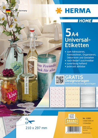 - Produkttyp: HERMA HOME A4 Universal-Etiketten ablösbar 5-Blatt-Packung
