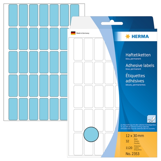 HERMA 2353 Vielzwecketiketten 12x30 mm blau Papier matt Handbesc