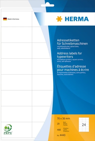 HERMA 4443 Adressetiketten für Schreibmaschinen A4 70x36 mm Papi