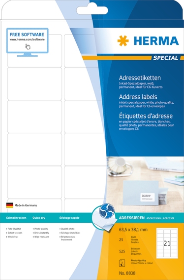 - Modell: HERMA 8838 ADRESSETIK INKJET