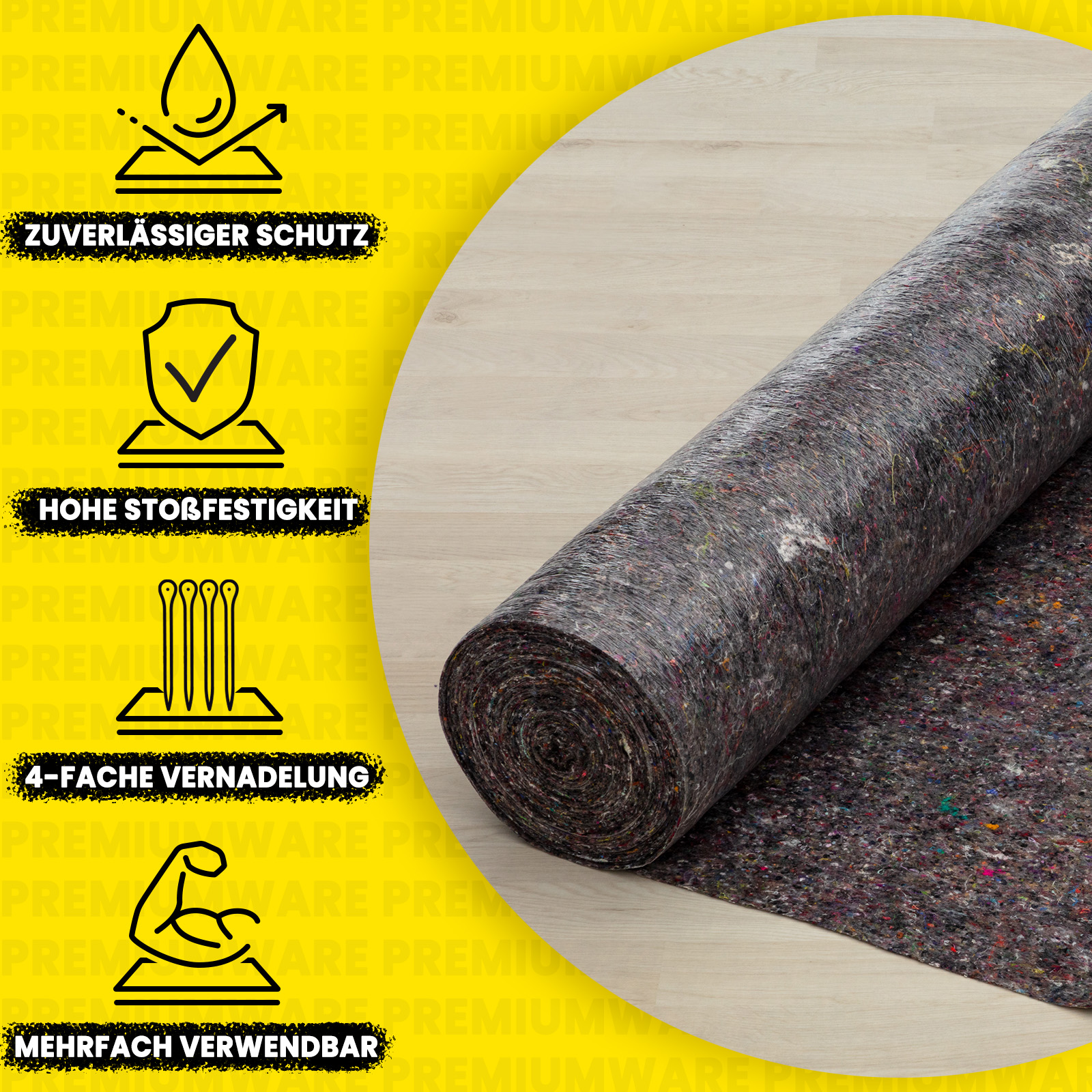 Das Malervlies besticht mit seiner guten Verarbeitung dank der 4-fachen Vernadelung. Die gewährleistet nicht nur eine optimale Farbaufnahme, sondern verhindern auch erfolgreich das Eindringen von Farbe in darunterliegende Schichten. Durch seine Mehrfachverwendbarkeit trägt das Vlies dazu bei, Ressourcen zu schonen und ermöglicht nachhaltiges Arbeiten.