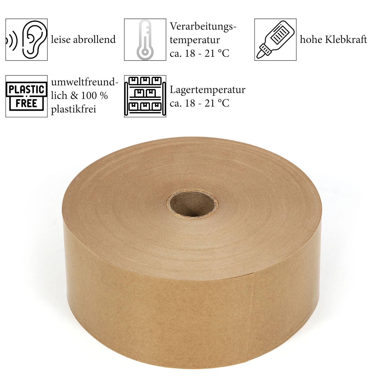 - Besonderheiten: hohe Klebkraft, umweltfreundlich, wirtschaftlich, 100% plastikfrei