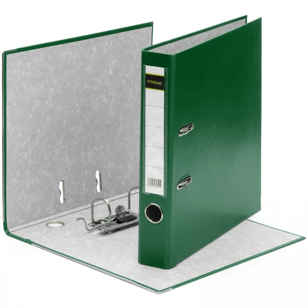 Der Metallkantenschutz an den unteren Kanten verhindert das typische Aufbiegen und Ausfransen, das bei intensiver Nutzung in Archiven oder an Arbeitsplätzen mit hohem Dokumentendurchlauf auftritt. Die Hebelmechanik lässt sich auch nach hundertfachem Öffnen und Schließen gleichmäßig betätigen, sodass Blätter sicher fixiert bleiben. Das metallgefasste Griffloch erleichtert das Herausziehen aus eng bestückten Regalen, ohne dass das Material am Griffrand einreißt.