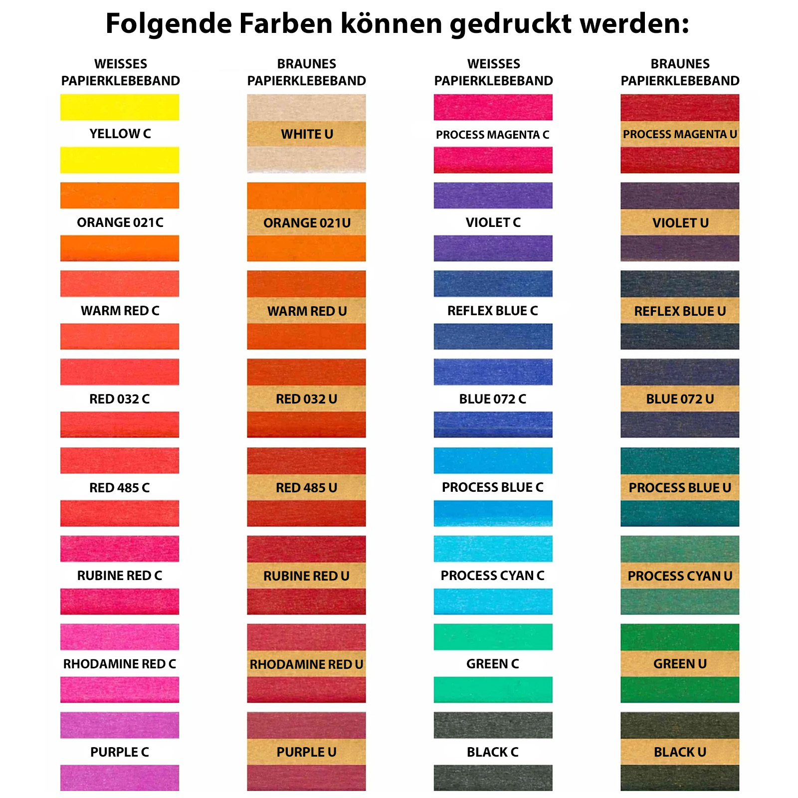 Unser Papier-Klebeband zum Bedrucken ist die perfekte Wahl für Unternehmen, die nachhaltiges Verpackungsmaterial, Werbeband mit Logo oder umweltfreundliche Versandlösungen suchen. Dank des Solvent Naturkautschuk-Klebers bietet es starke Haftung und lässt sich dennoch leise abrollen – ideal für Lager, Produktion, Büro oder Versandabteilung. Mit bis zu 3-farbigem Druck wird Ihr Papierklebeband zum individuellen Werbeträger auf jedem Paket.