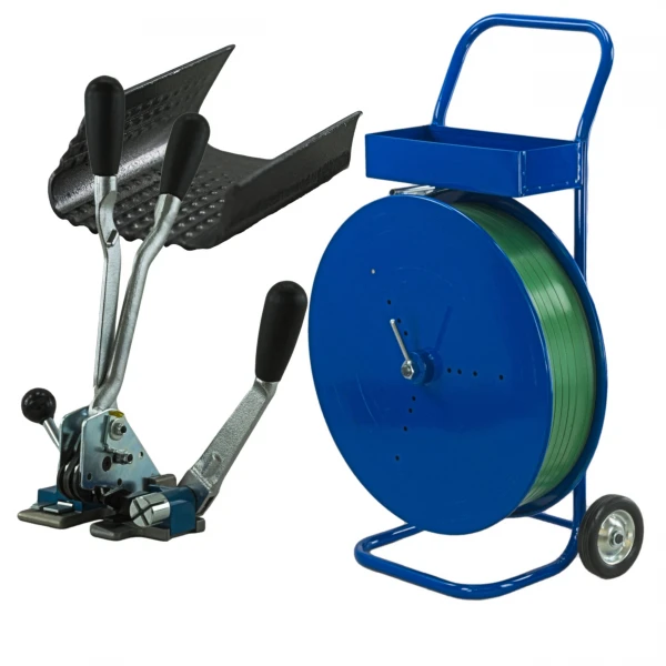 PET Umreifungsset 16 mm 1300 m Verschluss und Spanngerät Abrollwagen