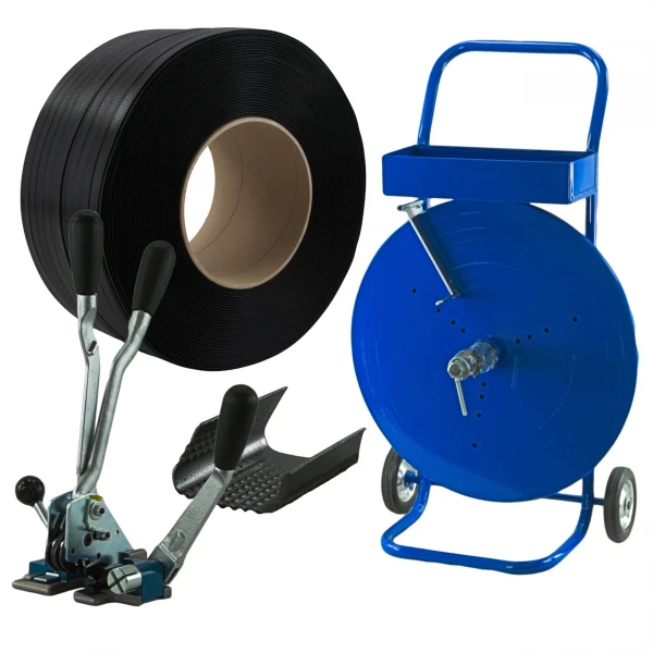 PP Umreifungsset 16 mm 2000 m Verschluss und Spanngerät Abrollwagen