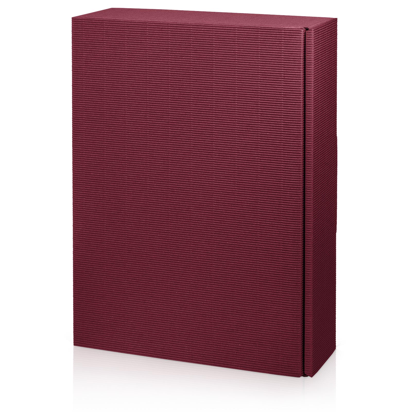 Diese qualitativ hochwertige Verpackung hat eine offene Wellpapp-Oberfläche. Die Innenseite sowie der separate offene Welleneinsatz weisen die gleiche Farbe wie die Außenseite auf.